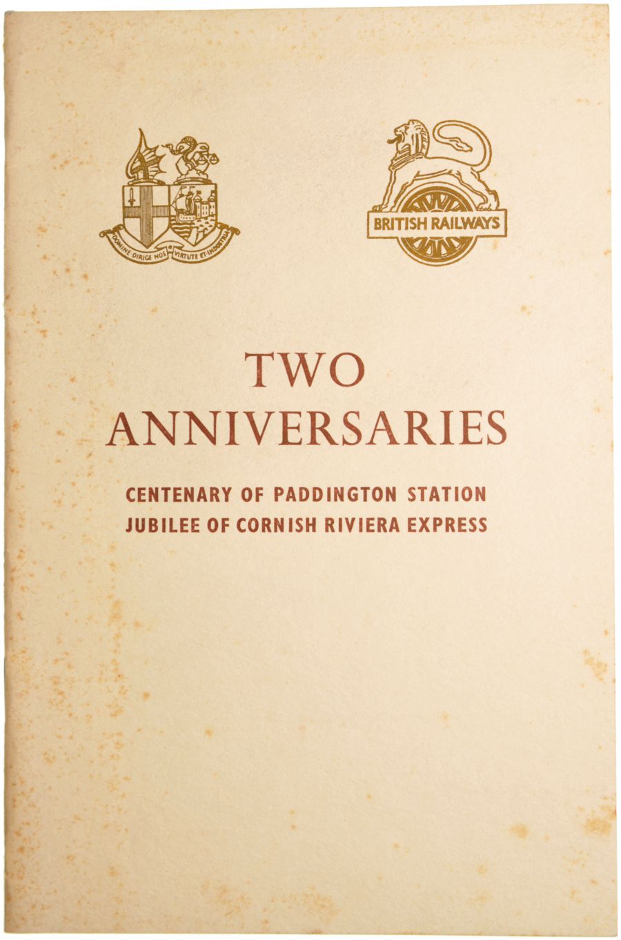Category: Publicity MaterialBR(W) booklet, Two Anniversaries, Paddington Centenary, Cornish Riviera Jubilee, 14pp, covers foxed. | |
