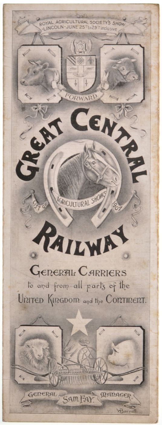 Category: Publicity MaterialGCR, Royal Agricultural Society Shows, 1907, three-panel folding card, one small mark inside, away from print. | |