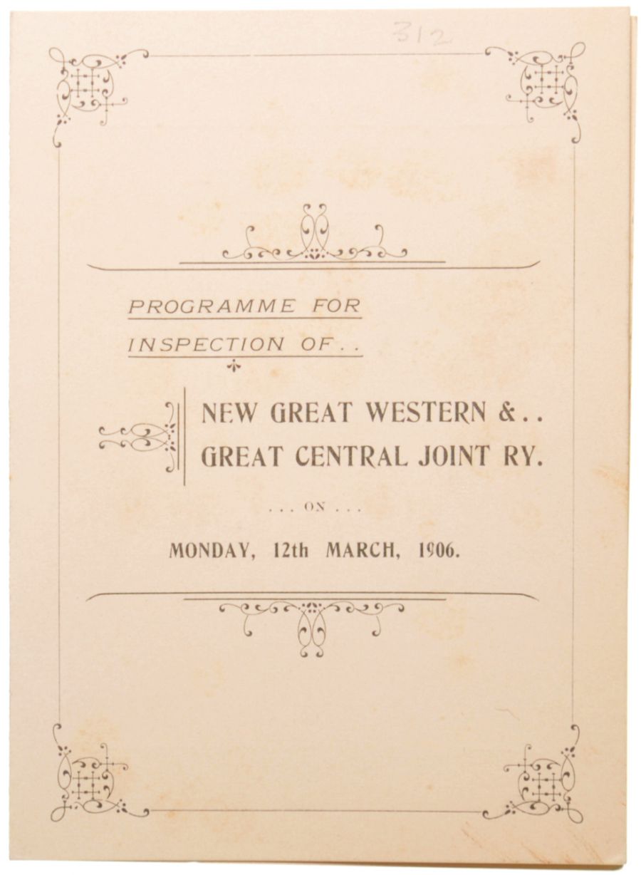 Category: Publicity MaterialGW&GC, Programme of Inspection, 12th March 1906, Paddington-Grendon Underwood, folding card, detached at spine. | |