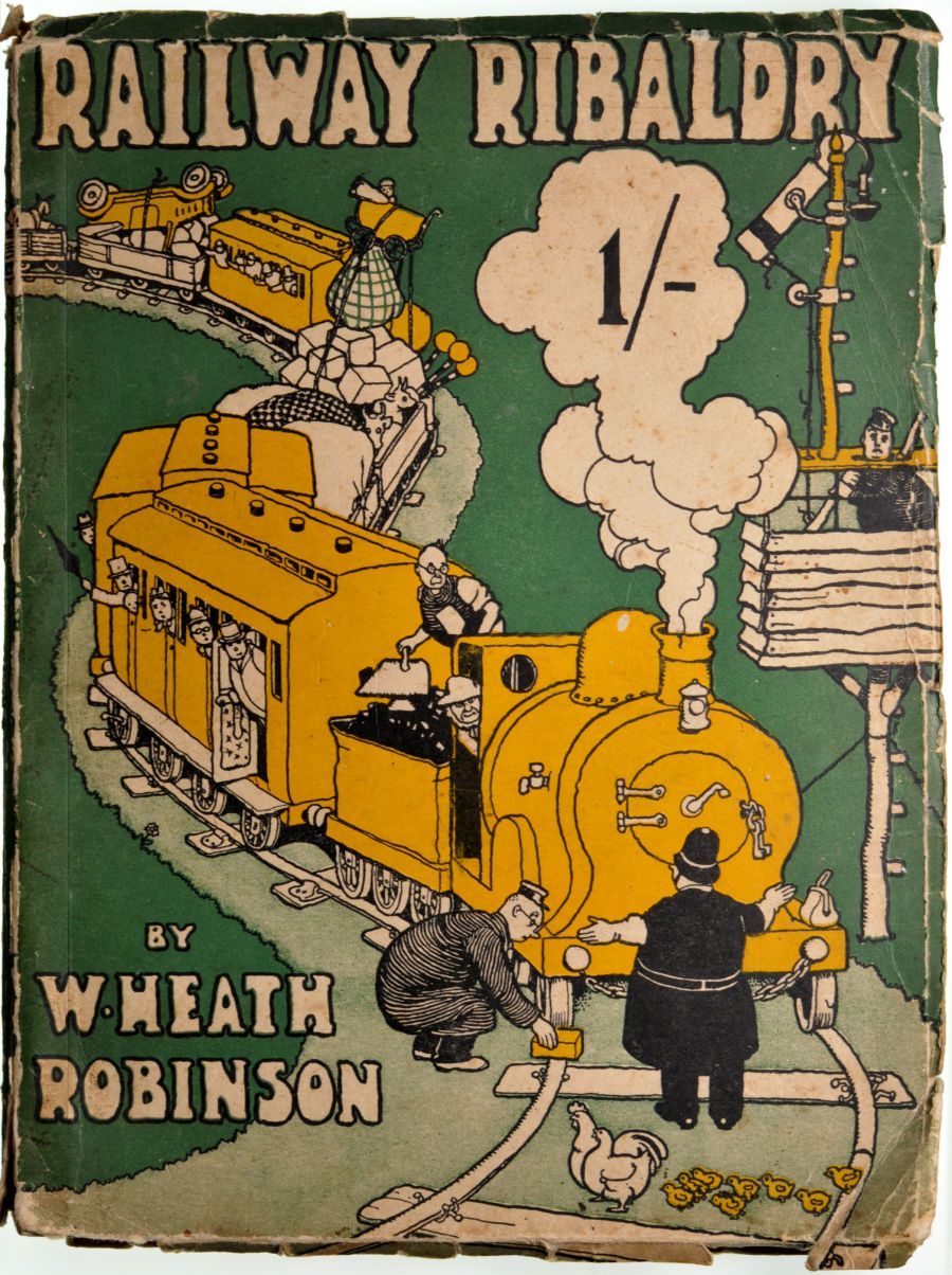 Category: Publicity MaterialGWR, Railway Ribaldry, by Heath Robinson, 1935, 96pp, railway cartoons, yapp bound, with wear at edges. | |
