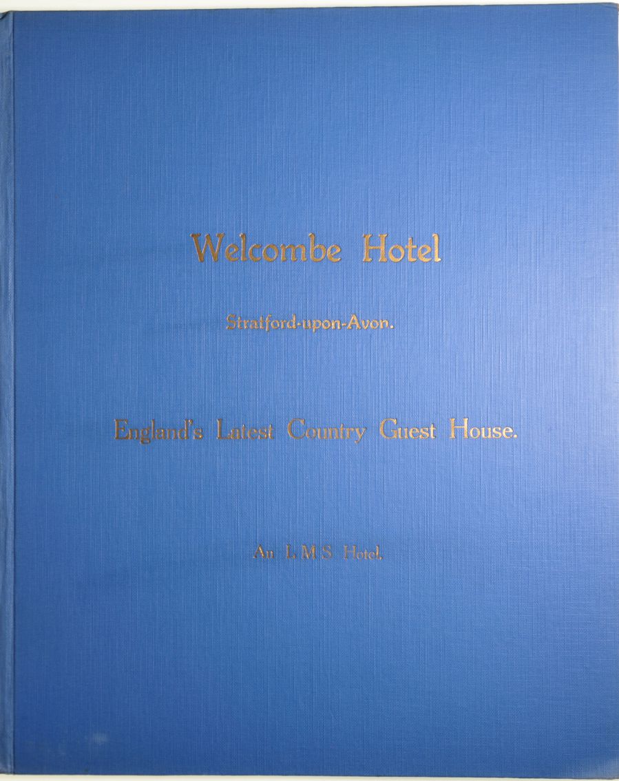 Category: Publicity MaterialLMS Welcombe Hotel Stratford, Souvenir of Opening, large plate photographs of hotel and interior, etc, within titled blue boards, 12"x 14". | |