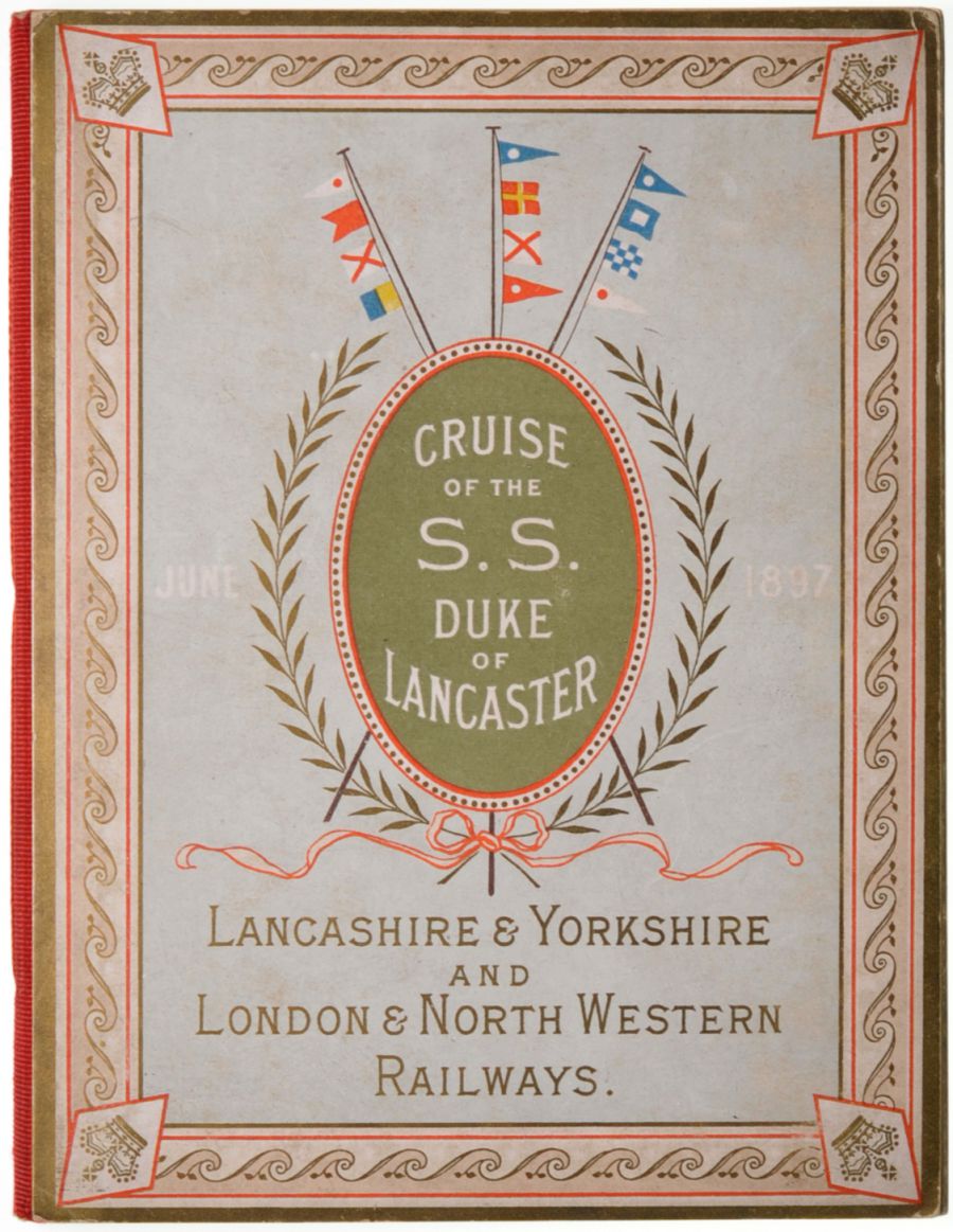 Category: Publicity MaterialLYR & LNWR, Cruise of the SS Duke of Lancaster, June 1897, for Diamond Jubilee. Lavishly produced booklet with itinerary, passenger list, Spithead Review list, maps, decorative covers. | |