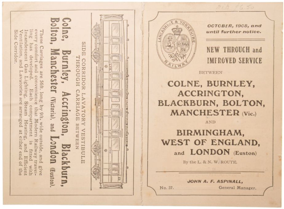 | Lot 802 | Category: Publicity MaterialL&YR, New Through Service, Colne-London, October 1908, folding card. |