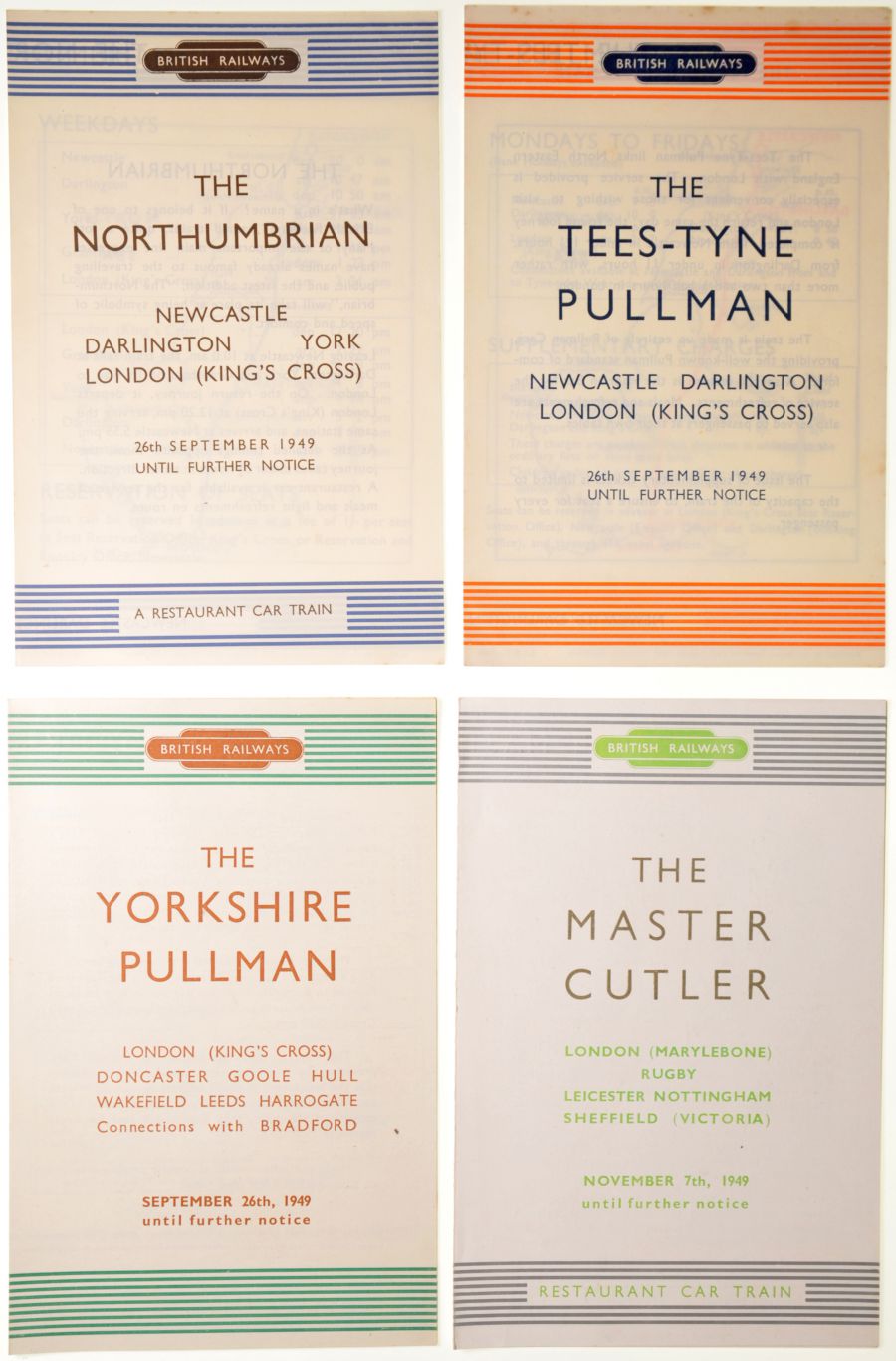 Category: Publicity MaterialBR named train brochures, Autumn 1949, Queen of Scots, White Rose, Flying Scotsman, South Yorkshireman, Tees-Tyne, Northumbrian, Master Cutler, Yorkshire Pullman, several with a little foxing. (8) | |