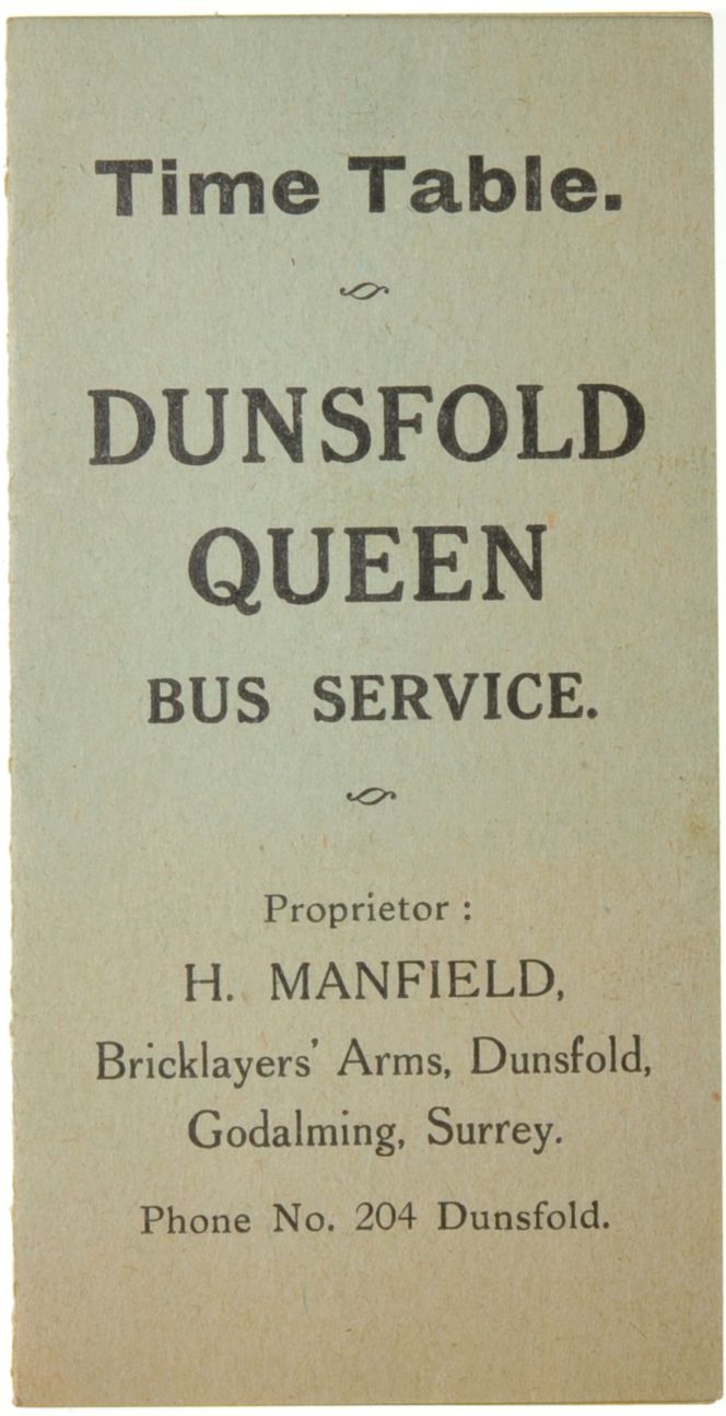 Category: Bus and TramDunsfold Queen bus service, Godalming, pocket timetable card, undated. | |