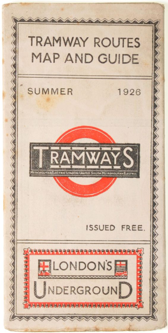 Category: London Transport Maps & BrochuresTramways Routes, Map and Guide, Summer 1926, a little wear at the folds. | |